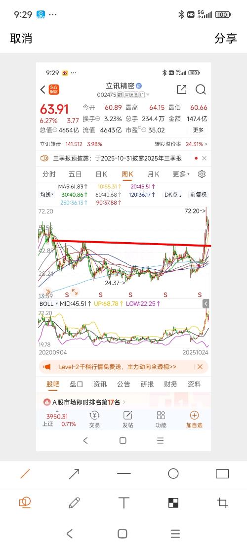 $歌尔股份(SZ002241)$三季报每股收益0.75,歌尔三,四季度是旺季,歌尔全年每股收益应该1左右,歌尔是科技股又是精分行业龙头企业,大盘屡创新高,市盈率35~40应该没问题,对应股价40以内正常。
