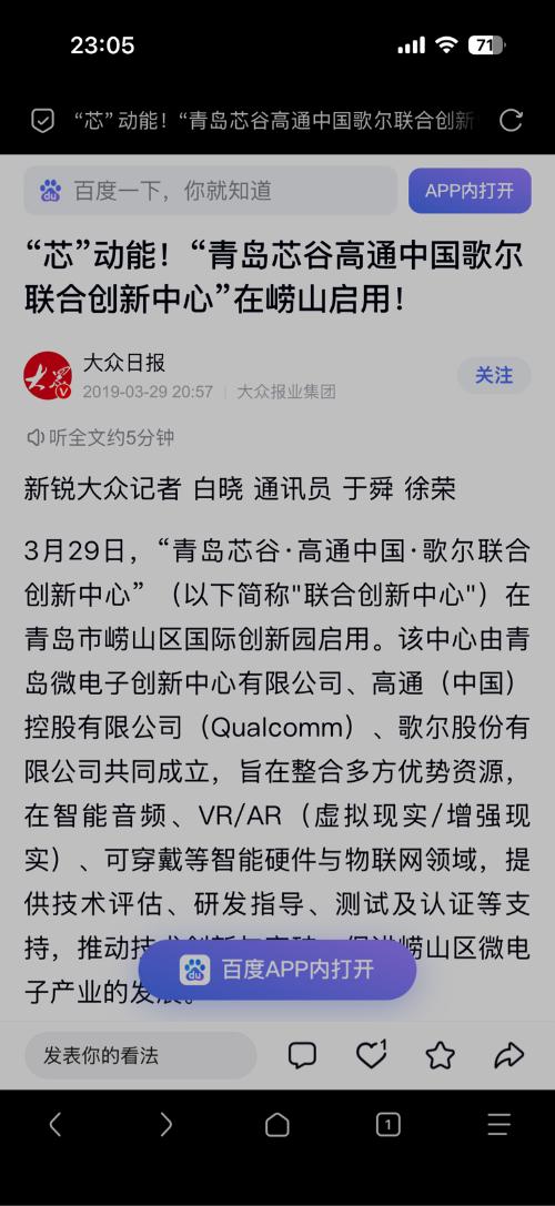 $歌尔股份(SZ002241)$高通官网和歌尔官网上确实分别查到了合作,可惜图片发不出来