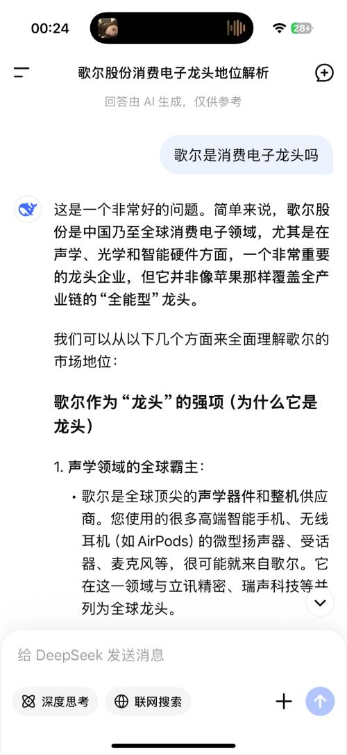 $歌尔股份(SZ002241)$ 我是不会信deepseek的