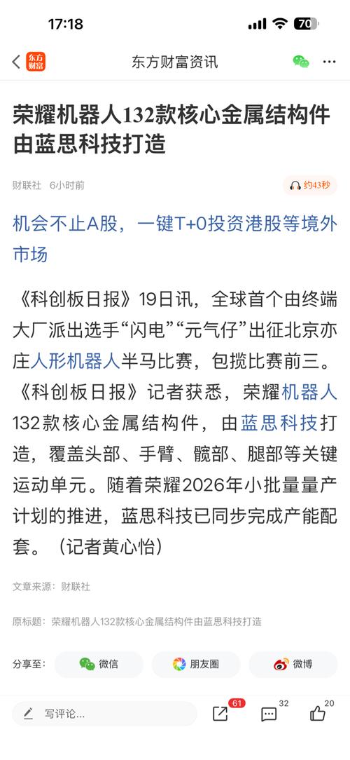 亏损的蓝思搭上荣耀机器人要起飞了,歌尔你搭上华为不能跳一下吗