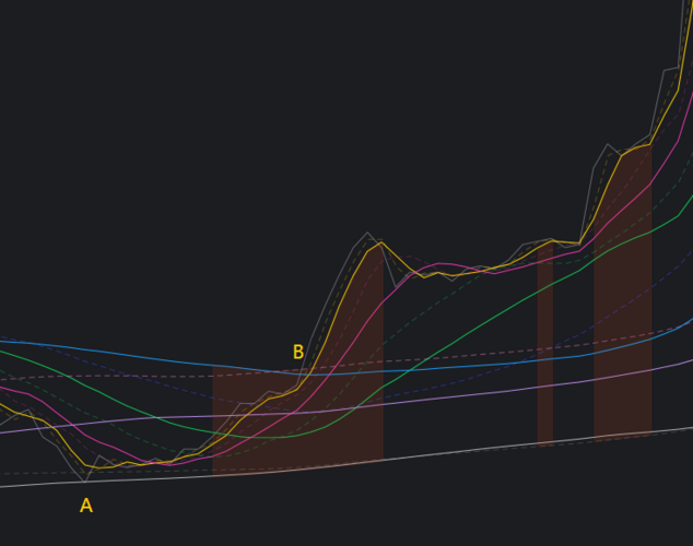 大洋电机 $大洋电机(SZ002249)$顶部价位约12.8元,目前已至顶部区域,务必警惕。 前期第一次买点如下图: 7月31日跌至下方阻力位(图中A点),空头未能突破,随即多头小周期动力开始启动,在窄幅区间(合力)内加速突破(方向),直至8月5日突破最上方阻力位(B点,最佳买点),“空间”完全打开,上涨趋势确定。 第二次买点如下图: 9月4日跌至下方阻力位(图中A点),空头未能突破,随即多头小周...