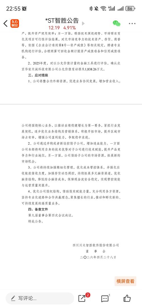 川大智胜明日股价走势预测观点(仅供参考):1.年报2025年营业收入>3亿元,不退市利好,保壳成功2.股东人数由3.1万人,减少至2.19万人,通过近一年的洗盘,利好3.最近两天股票趋势向上,情绪价值向上4.股权优化,股东赋能,不排除开盘涨停,谢谢!