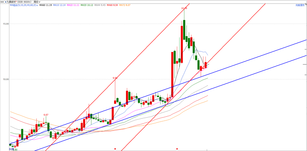 #炒股日记##复盘记录##收盘点评##股市怎么看##社区牛人计划# $九鼎新材(SZ002201)$ 在周线分析投资标的 投资标的得到蓝色阻支区间的蓝色一支...