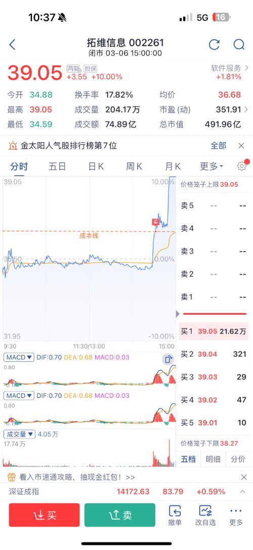 $拓维信息(SZ002261)$周五不是水下低吸的危险,周五4个点涨幅的时候我差点追了,想想这个安全垫不够厚,放弃了。如果真的是好东西为什么不早上直接拉,或者午后直接拉一支穿云箭。有人会说不直接拉是洗盘,但我思考下来就是不够强,早上上板肯定强于午后上板。中东局势周六又有新消息了,还好没追。很多人都来赌DEEPSEEKV4,但我怕再次延期或不及预期,也怕外围动荡。这两天的大盘只是小反弹,并不稳。当然...