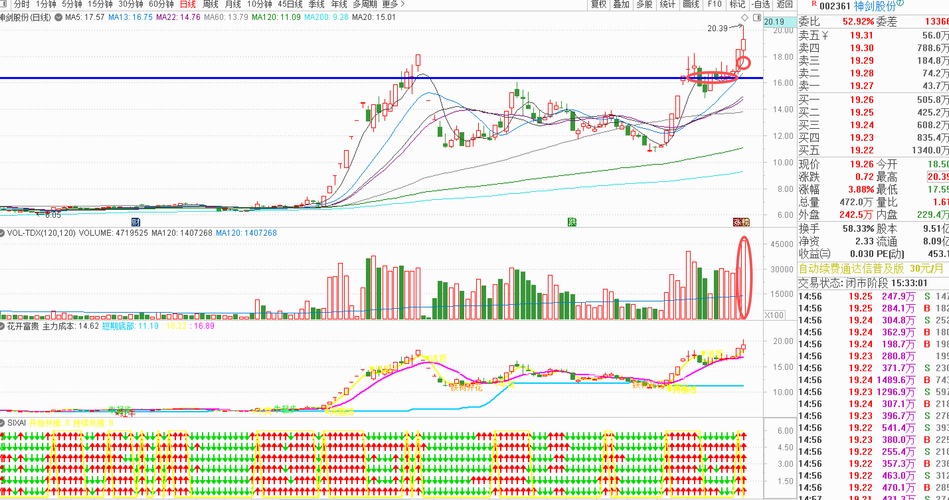 $拓维信息(SZ002261)$$神剑股份(SZ002361)$$浙文互联(SH600986)$ 最近在忙换工作的事情,没什么时间发帖,东财停更了挺长时间了。星球也没太多时间回复问题。今天基本大事定了,可以多花些时间在复盘上了。 大盘情况:整体成交23551亿,对比昨天缩量745亿。上涨4293,下跌1072,涨停88,跌停9。连板总共12只,高标圣阳GF已经6板,博云XC4板,除了两个ST,二进...