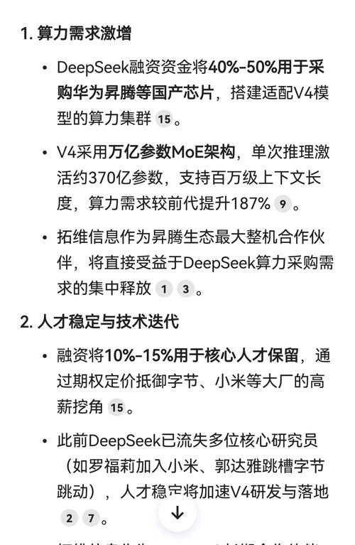 $首都在线(SZ300846)$$拓维信息(SZ002261)$明天不要管外围怎么样,ds融资3亿美刀,估值一百亿,有些博主说ds人才流失,不值钱了,笑死,英伟达老总都涉涉发抖,这三亿美金是让某些人上座,不是简单人物能拿到的,梁总要做的是国产算力闭环,没有哪个大模型有这货代表国际意志,这是巨大预期差,能放走的人都不是很人才,你敢说梁总没钱吗?别逗了,看好国产算力链,说破天国产自主都是必然,包括卫星...