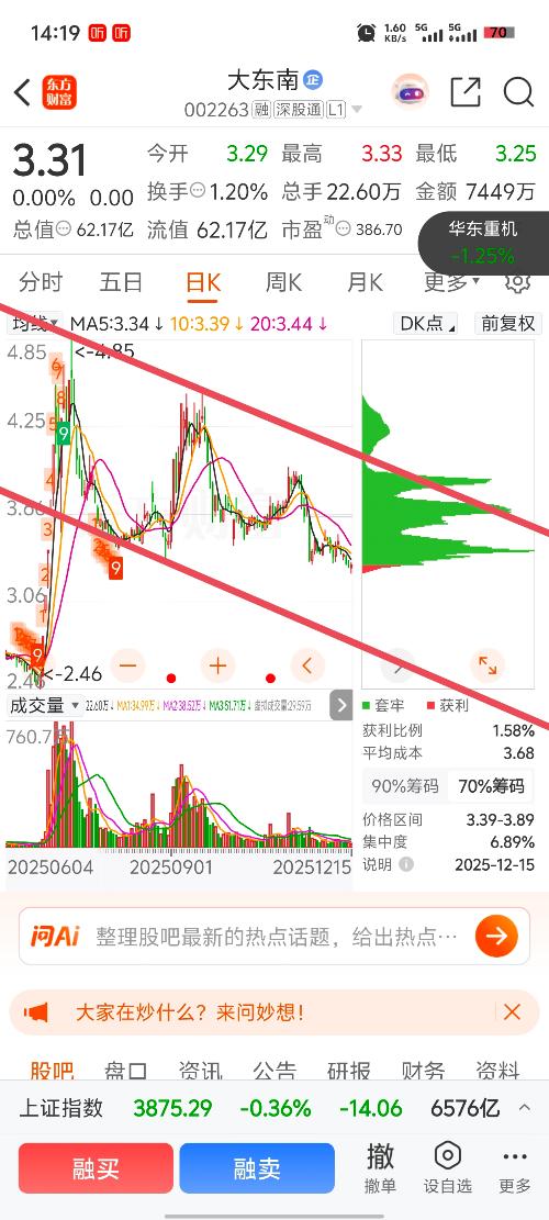 $大东南(SZ002263)$这样的股市还能玩吗!不能玩了,