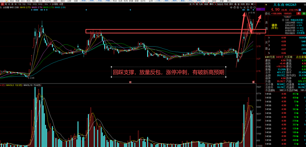 大东南(现价4块1)涨停倍量假阴线,后市可期