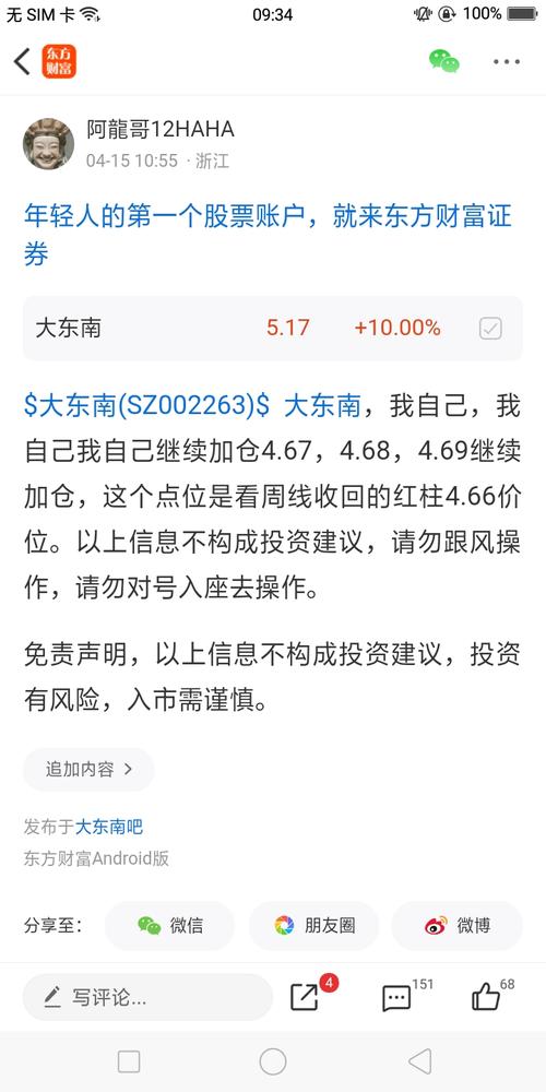 $大东南(SZ002263)$大东南,恭喜恭喜恭喜,同喜同喜,同喜,秒板涨停!你们早上想跟进来,都不给你们机会。前两天不去潜伏。今天直接秒版涨停。我早就在说,行情不会走完的。唱空的人,你们接着唱呀!快点唱空,快点唱空,你们接着唱呀!不经过大脑去分析的,老是乱弹琴唱空。以上信息不构成投资建议,请勿跟风操作,请勿跟风操作。 免责声明,以上信息不构成投资建议,投资有风险,入市需谨慎。 免责声明,以上信息...