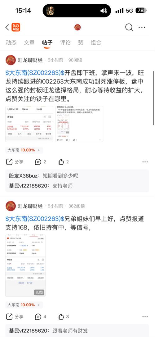 $大东南(SZ002263)$兄弟姐妹们,一如既往的先点赞报道支持168。 今日早早的收工,恭喜相信旺龙得兄弟姐妹们跟上吃肉,中途虽然有些许坎坷,但是不影响我们吃肉,跟上的朋友们明天等待信号下车,继续扩大收益。