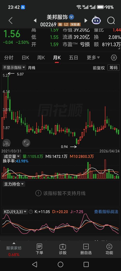 $美邦服饰(SZ002269)$ 月J值 即将 创近10年来新低。。