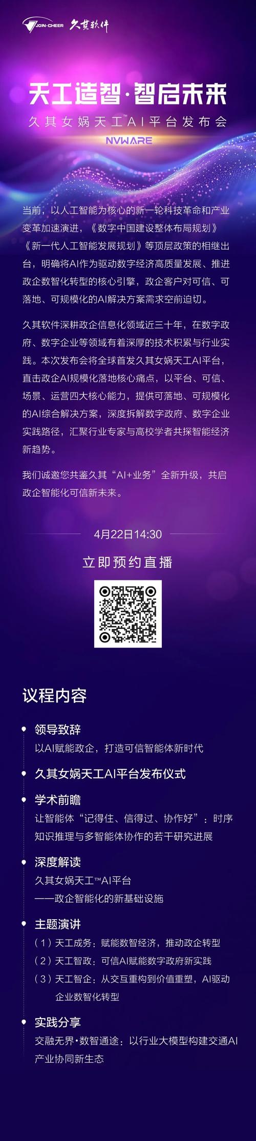 重磅预告 | 久其女娲天工AI平台发布会 邀您智启未来!