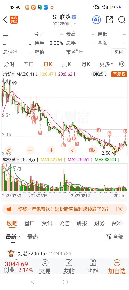 $ST联络(SZ002280)$兄弟们我来抄底了