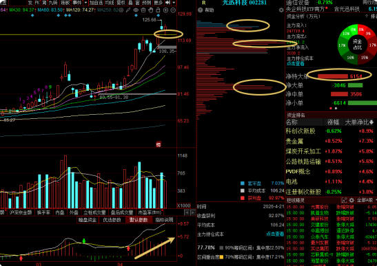 $光迅科技(SZ002281)$$仕佳光子(SH688313)$$天孚通信(SZ300394)$ 各位老铁,晚上好。 免责声明:本文仅为当日A股市场客观复盘与盘面数据梳理,不构成任何投资建议。市场有风险,投资需谨慎。个人持仓展示仅为复盘参考,不代表交易指引,投资者应独立审慎决策。 一,关注标的解析:(个人观点仅供交流学习,不作为投资操作依据。) 一、光迅科技(002281):前高蓄势,强势换手 今...