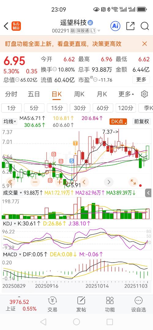 $遥望科技(SZ002291)$这个DK指标也不准啊