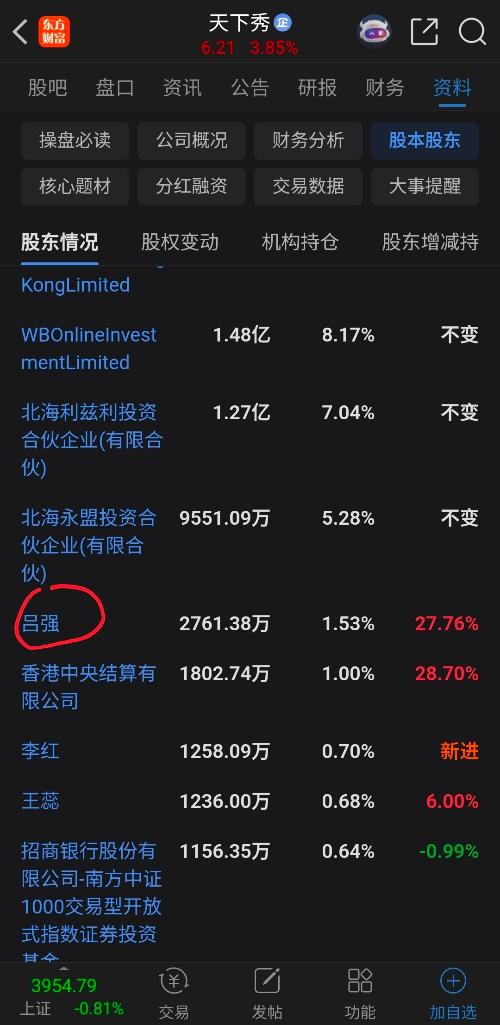 $遥望科技(SZ002291)$吕强已经清仓去$天下秀(SH600556)$了。