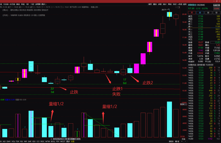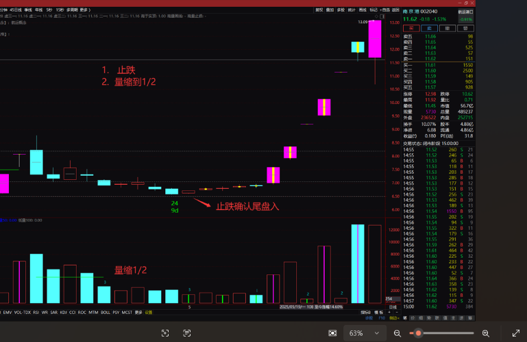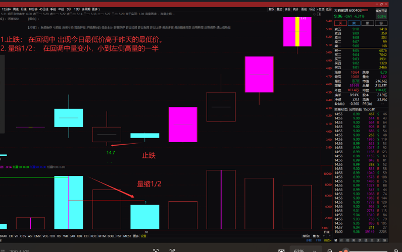 为什么现在选的股票一定是要大跌,跌的幅度还是蛮凶的目的:其一.是在拉升之前,要把一些不稳定的码给洗出去,其二,从位置上看,它一定是在左侧的高量峰的价位附近,也是解放在左峰被套的人,不给他们走,他们被套久了,肯定在拉伸过程中容易抛量走人,影响主力的拉伸效果。庄家是不会背着这个炸弹去拉升的,回调就是为了引爆,让他们先出来。我们就要在这个时候介入,另外对于我们来说,比相对的安全很多。