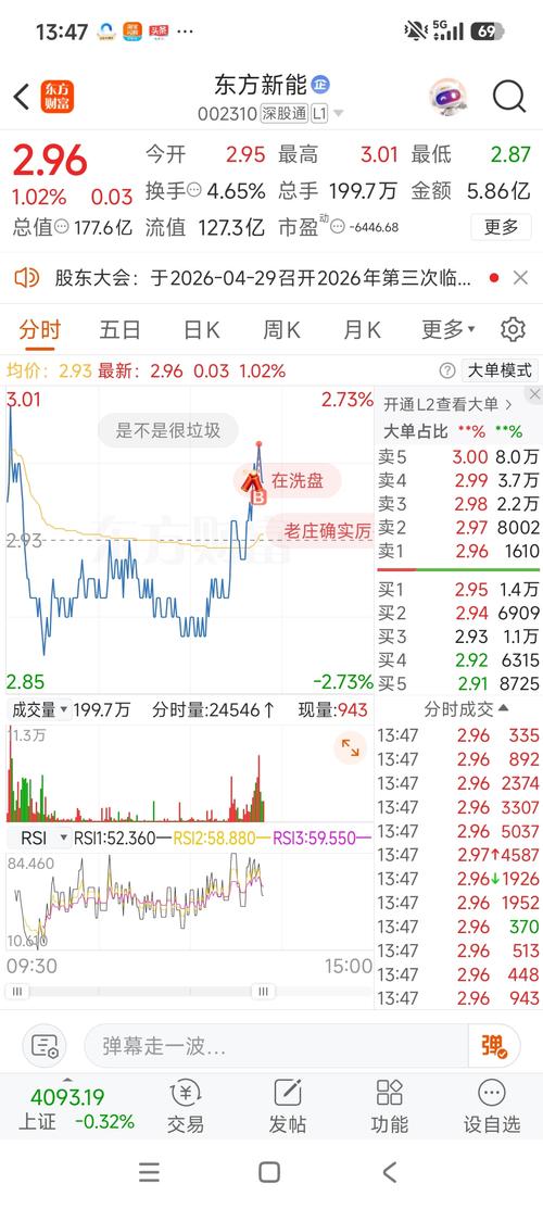 $东方新能(SZ002310)$新来的股民朋友,这个庄什么情况我想分享给你们,涨五个点能负三收盘的,涨停第二天大概率没有溢价,拉升五分钱能对倒T一天,而且长期都是几分钱对倒一天最后还亏钱,言尽于此,老股东的经验了,套了很久很久,孩子身体不好生病经常用钱都是一点点割掉补贴的,不然真的舍不得辛苦钱,我自己也是没有劳动能力了,以前工作还能补点进去,现在没办法赚钱补进去,成本长期六元以上不知道有生之年能否...
