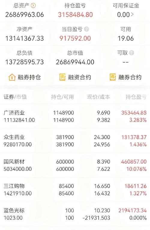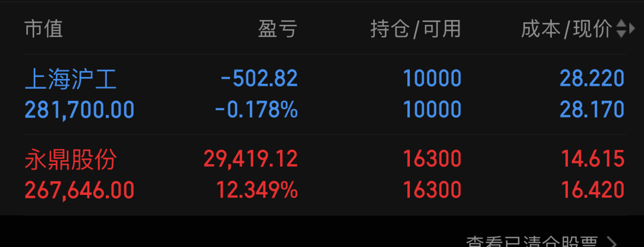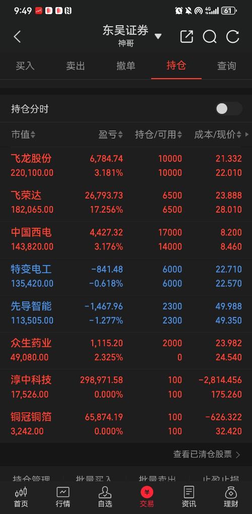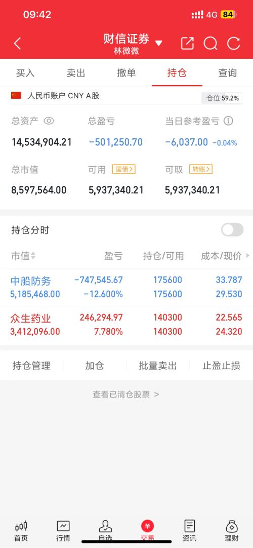 继续持有$中船防务(SH600685)$$众生药业(SZ002317)$这支具备增长潜力,我满怀期待,相信随着后续市场的发展,达成盈利目标。 在此特别提醒,本人所发表的所有内容仅代表个人建议与观点。