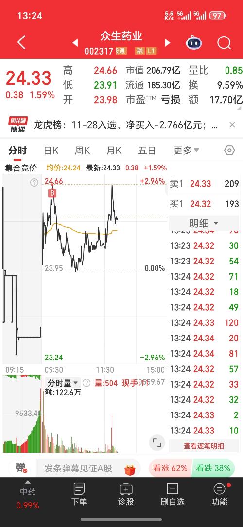 $众生药业(SZ002317)$不好意思各位,庄已经被我这买点压制了