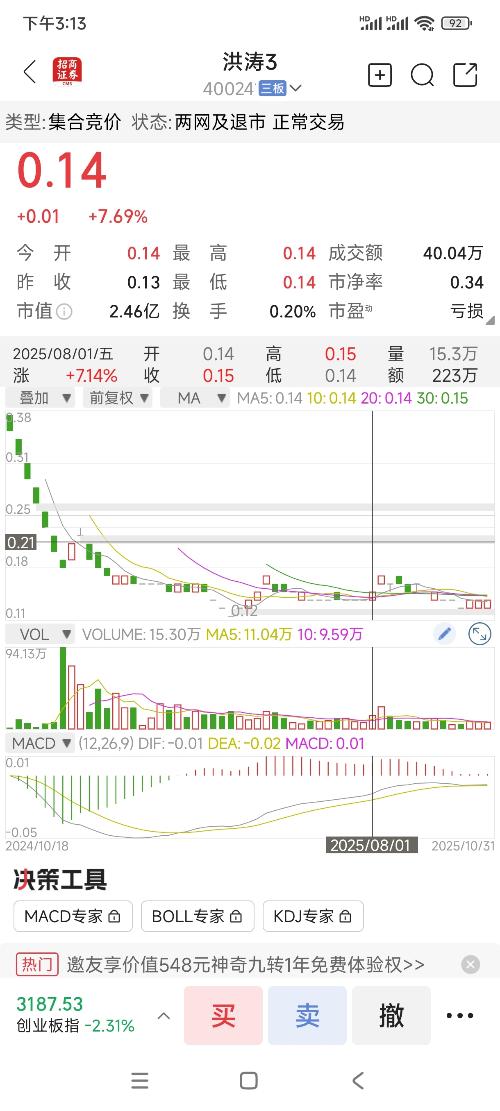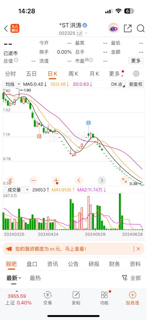 $*ST洪涛(SZ002325)$各位大神现在多少钱来着这个股,我看不到