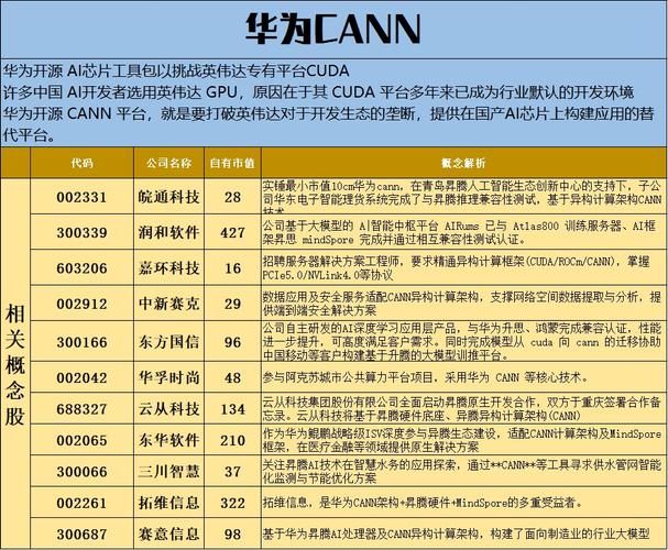 华为CANN破局英伟达生态垄断!华为CANN概念11家公司