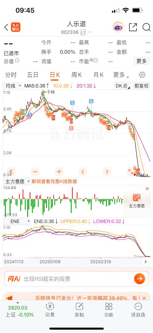$人乐退(SZ002336)$见证过的另一个退市股,不碰st
