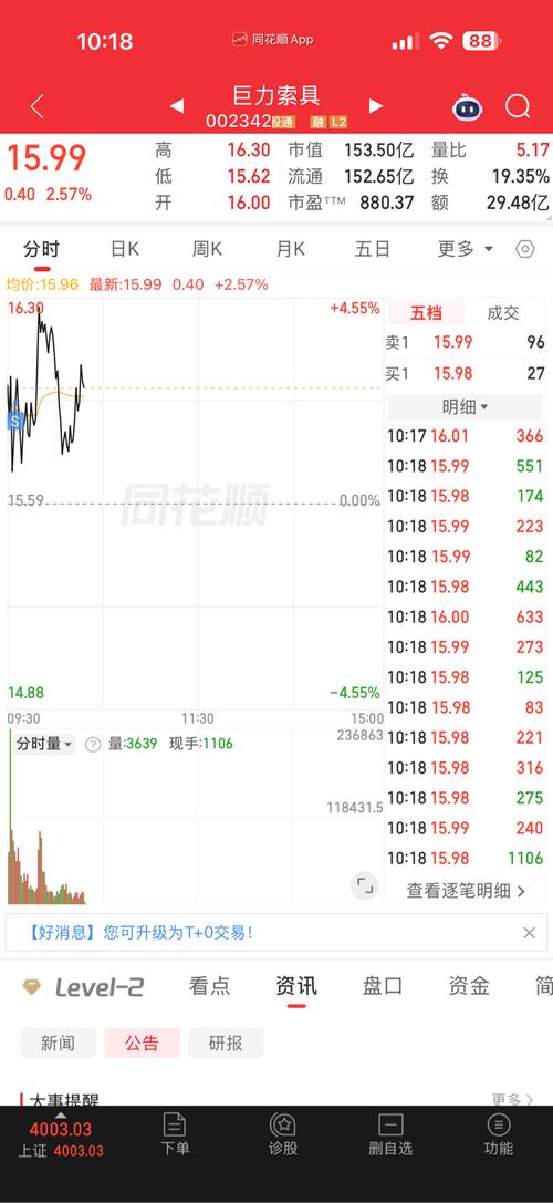 $巨力索具(SZ002342)$该股我是很早以前看好的股票,以调整好了开始从新看好的股票,做好高抛低吸是很好的,以上为个人观点,不构成任何股票推荐,大家切勿盲目跟随买卖,所有操作均需自主决策、自负盈亏,与本人无关,本人仅为免费交流股票、共同学习分享心得,所有观点仅供参考,不构成任何投资建议,股市有风险,投资需谨慎,一切后果自行承担,