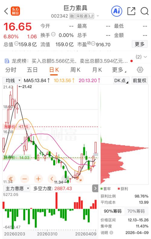 资讯 巨力索具(002342)龙虎榜数据(04-09)