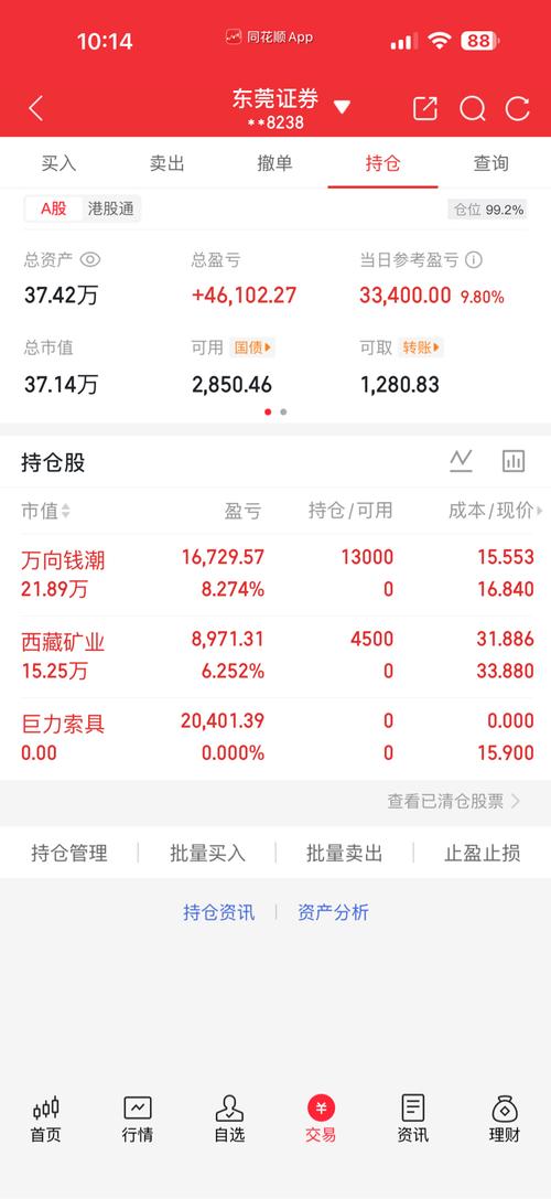 9w挑战400w实盘记录第28天 $巨力索具(SZ002342)$开盘等了五分钟没有拉升涨停直接放弃,多半有兑现的可能,挑战期间必须严格遵守纪律! $万向钱潮(SZ000559)$固态电池资金回流明显,涨势稳定之所以选择,能否成功交个市场定夺 $西藏矿业(SZ000762)$有色金属竞价异动,锂电池的修复,选择该股在合适不过! 个人意见,仅供参考!