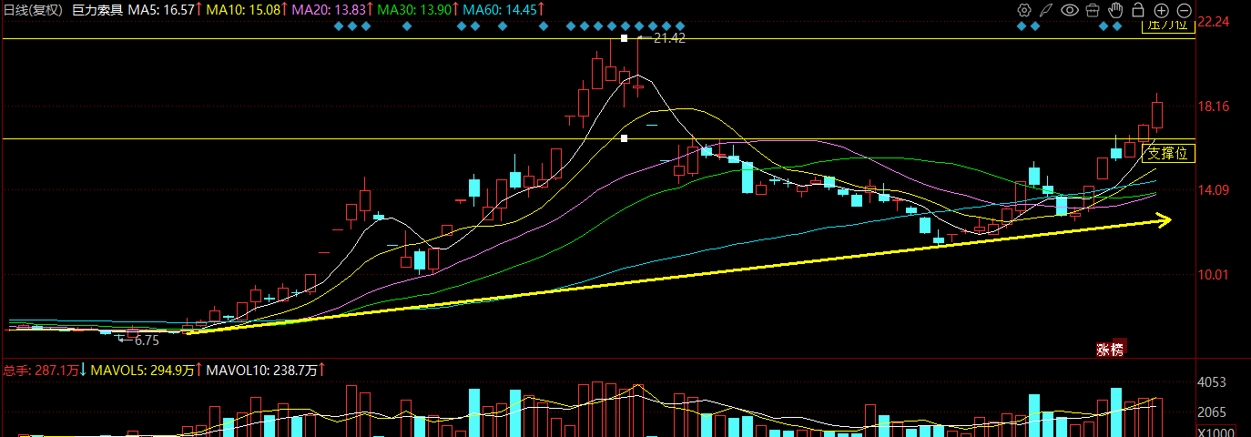 巨力索具002342:巨力索具昨日延续稳健的上行节奏,盘中冲高后虽有小幅回落修整,但依旧收出可观涨幅,量能温和释放,盘口承接扎实有力,短期均线保持完好的多头排列,整体上升结构稳固。公司深耕商业航天核心配套领域,业绩基本面持续向好,叠加赛道热度稳步回暖,为股价上行提供了坚实支撑。在轻舟看来,该股今日重点关注高位平台的企稳效果,只要牢牢守住下方关键均线支撑,这波上升行情便有望稳步延续,趋势清晰明朗,安...