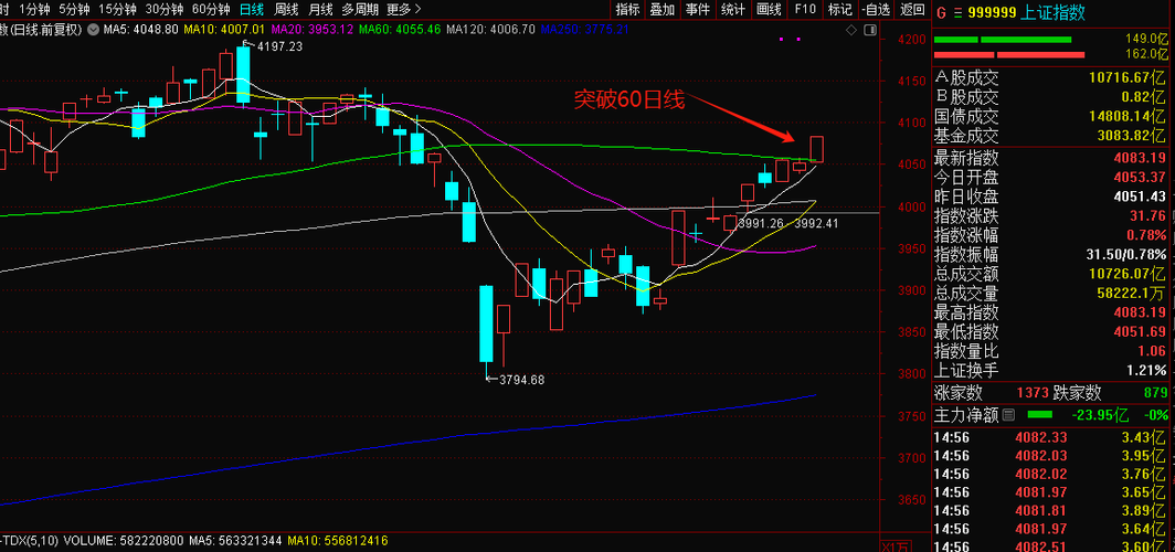 三大指数全线小幅上涨,上证指数收于4082.13点,涨了0.76%,涨了30.70点;深证成指收于14966.75点,涨了0.55%;沪深300涨0.61%,两市全天总成交25787.70亿元(上证指数成交额10845.78亿,深证成指14941.92亿),比上周五明显放量,有部分资金开始进场,但还没到全面进攻的程度。个股方面涨多跌少,赚钱效应尚可,但板块分化依旧明显,AI光模块、商业航天板块有异...