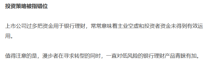 1.为啥公司一直在理财?这个机构调查的时候已经明确说出问题所在