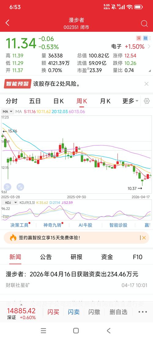 $漫步者(SZ002351)$很多人低位能熬住,但是在拉升期却熬不住,漫步者股性很差的,很难操作,如果你不是那种心静如水的人,很难赚到它的钱。亏不多,不建议继续耗