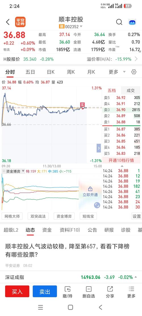 $顺丰控股(SZ002352)$顺丰股票拿不住的可以卖,因为顺丰里有不少死拿的,股票一时半会涨不了,最近没有机构入场,只有不断离场的机构和散户。这么说吧,半年内大涨概率不到一半。