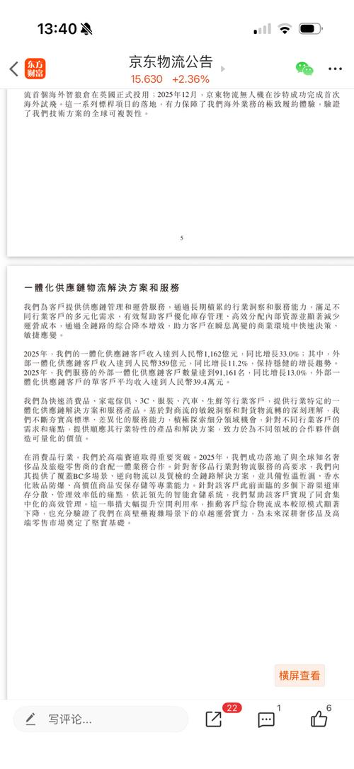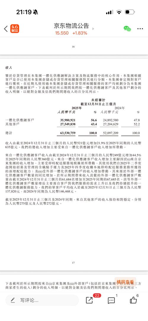 京东物流抢三通一达和顺丰客户?我们来看看相关的业务情况(京东物流外部收入增长才7%左右,增长比顺丰和两通一达还低) 1.2025年京东物流外部一体化供应链营收359亿元,同比增长11.2% 2.其他客户(全国长链快递和快运)全年营收1009亿元,同比增长5.7%,其中快运是增长,而长链快递营收是下降。 这两块业务在2025年加起来营收是1368亿元,而在2024年营收是1278亿元,同比增长7%。...