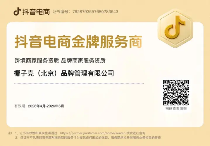 近日,天娱数科子公司椰子壳凭借全链路运营能力,成功获评2026年第二季度抖音电商金牌服务商资质。这一由抖音官方颁发的重磅荣誉,是对椰子壳在跨境商家服务和品牌商家服务两方面综合实力的双重认可,也标志着天娱数科AI营销业务在商业化落地与行业影响力方面再上新台阶。 金牌资质:行业权威认证的严苛门槛 抖音电商“金牌服务商”认证,是平台对服务商进行多维度综合评估后授予的高阶荣誉,需经过业绩规模、商家服务质量...