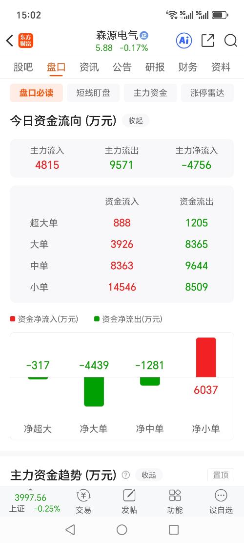 $森源电气(SZ002358)$ 流出这么多,跌1分?咋个去理解?