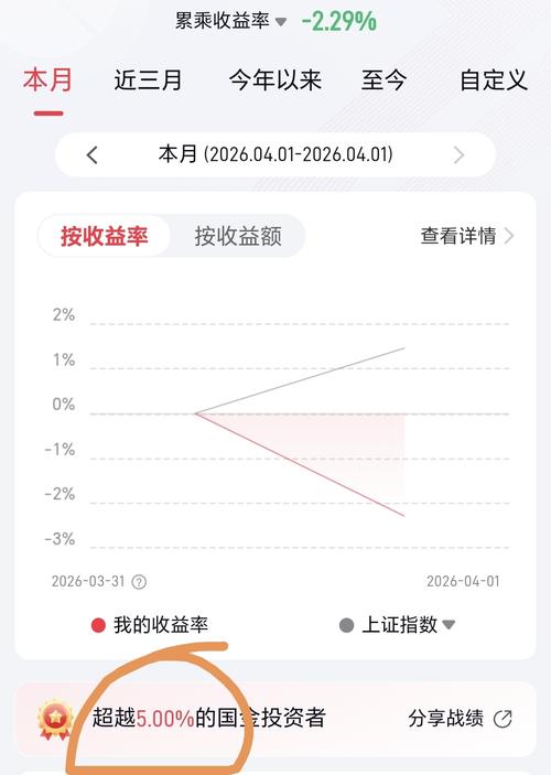 家人们,4月第一天开门黑,账户-2.29%,只超越5%的全国投资者,说不难受那是假的! 但咱炒股的,哪有一帆风顺的?今天的下跌,就是明天上涨的铺垫! 跑输大盘又怎样?95%的人比我强又怎样?A股从来都是笑到最后才是赢家! 今天的浮亏只是暂时的,市场的回调就是考验我心态,妹的! 四月才刚刚开始,一天的涨跌决定不了整月的收益,更决定不了全年的走势! 咱心态稳住,仓位拿住,耐心等待风口到来,用时间换空间...
