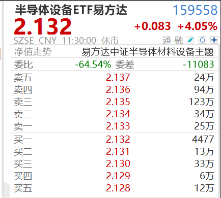 近期,科技板块全线回暖,半导体设备表现尤其亮眼。 半导体设备ETF易方达(159558)今日盘中大涨超4%! 数据来源:wind,2026-4-14盘中。 目前,全球半导体行业正经历强劲复苏。根据Gartner的最新预测,2026年全球半导体销售额将超过1.3万亿美元,同比增长64%。全球半导体月度销售额已连续28个月实现同比增长,其中2026年2月同比增长61.8%,环比增长7.6%。 从国内来...