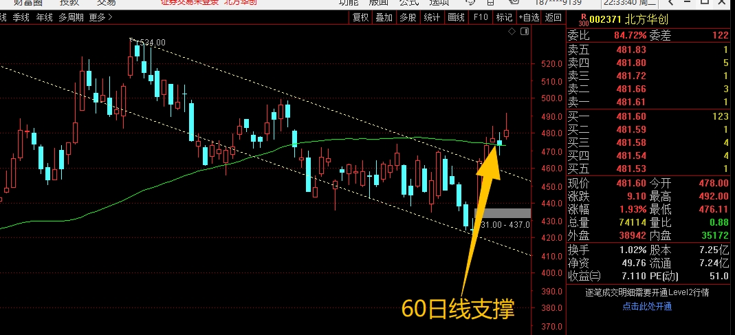 $北方华创(SZ002371)$近期的反弹趋势走得还不错,整体是逐步拉高,突破了前期的下降通道,这几天主要是卡在60日线位置震荡,所以接下来,重点就看60日线的得失,能稳住就没问题,继续持仓等待,但如果有效跌破就要注意回落风险了,操作上这里可以考虑直接把前面低位抄底的仓位高抛,不用管后面是涨是跌,落袋为主,等后面企稳了再考虑回补仓位也不迟,这样比较稳妥。