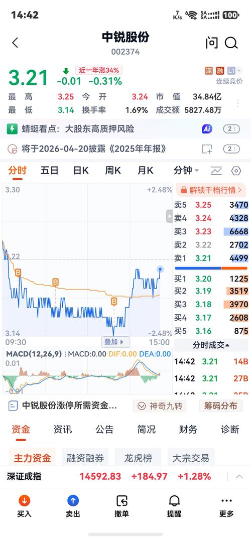 $中锐股份(SZ002374)$明天大盘调整,这厮一定到3.06元
