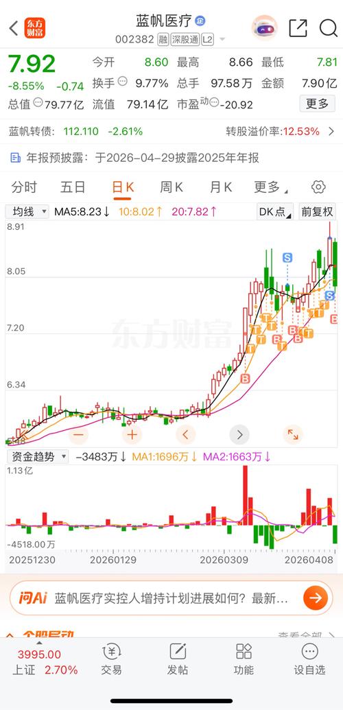 $蓝帆医疗(SZ002382)$主力借高管增持之机,近五日流出2.27亿,跑路明显了。