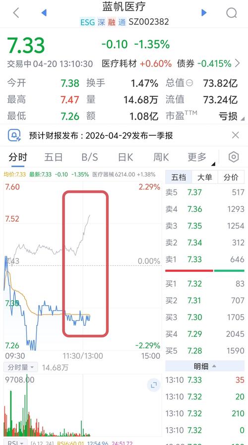 $蓝帆医疗(SZ002382)$日线超卖严重,有技术性反弹的要求,叠加MACD30分钟级别底背离已经成形且已完成回踩动作,短期看涨目标8.55元。