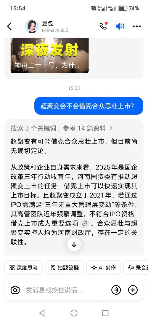 $合众思壮(SZ002383)$ 超聚变有可能借壳合众思壮上市,但目前尚无确切定论。 从政策和企业自身需求来看,2025年是国企改革三年行动收官年,河南国资委有推动超聚变上市的任务,借壳上市可以快速实现其上市目标。且超聚变成立于2021年,若通过IPO需满足“三年无重大管理层变动”等条件,其高管团队近年频繁调整,不符合IPO资格,借壳上市成为重要选项。合众思壮与超聚变实控人均为河南财政厅,存在一定...