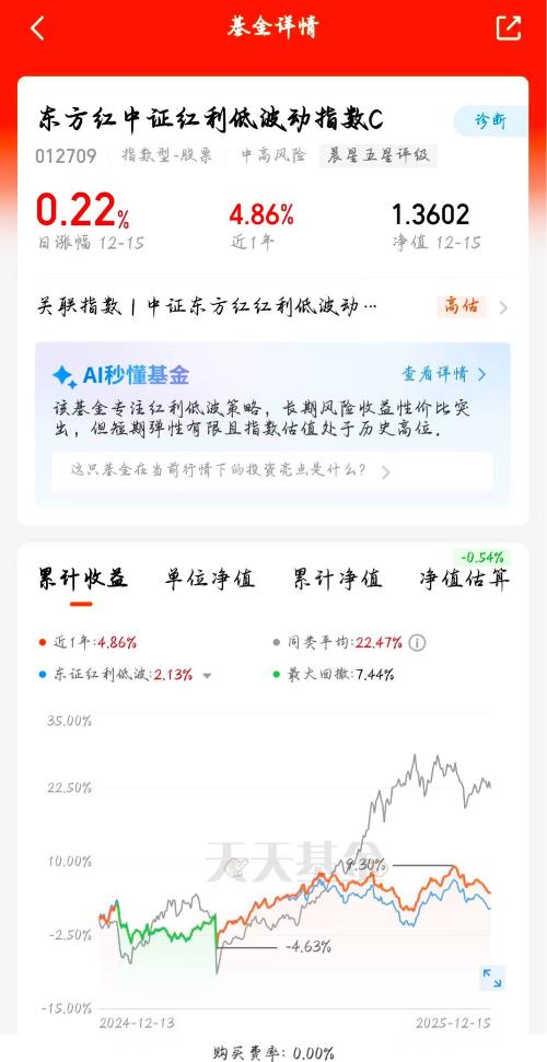 年底市场波动可能变大,想稳健增值就关注红利产品,东方红红利低波就是个好选择,既能防御风险又能赚收益,不用担惊受怕。