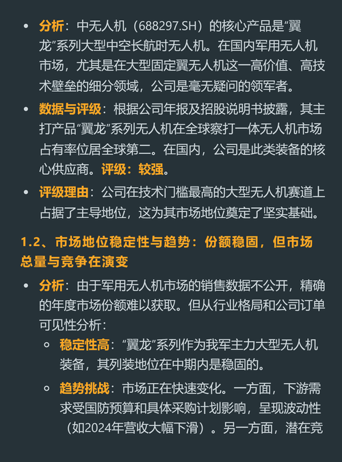 $浦发银行(SH600000)$$航天彩虹(SZ002389)$$中航沈飞(SH600760)$很多人觉得手握翼龙系列的中无人机是妥妥的军工白马,有深不可测的护城河,实际拆解下来,它只能算弱竞争优势,甚至算不上拥有真正的结构性壁垒。 它确实是国内大型固定翼军用无人机龙头,全球察打一体无人机市占率排第二,有军工准入资质这个硬门槛拦住了外来玩家。 但这个领先地位并不稳。 行业内有同等资质的航天科工、航...