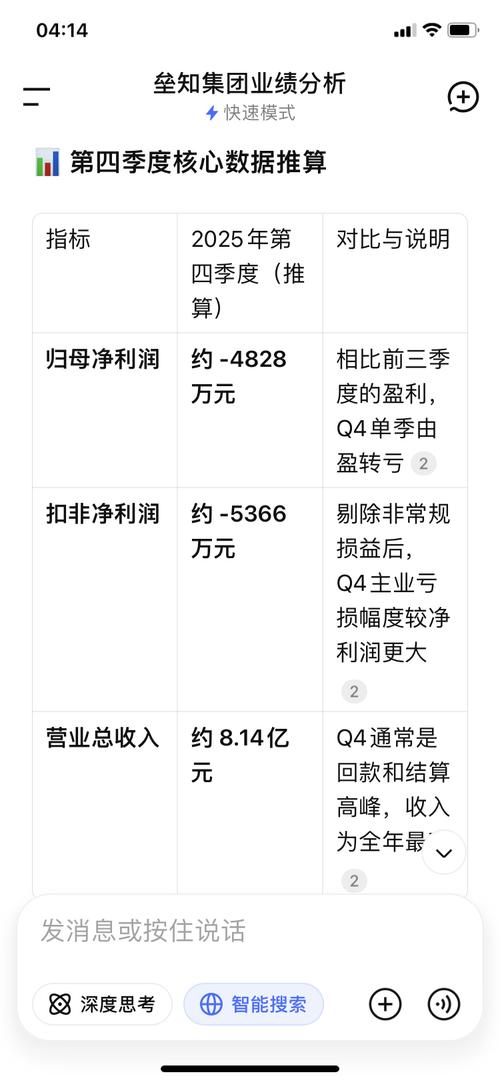 $垒知集团(SZ002398)$第四季度业绩亏损推算