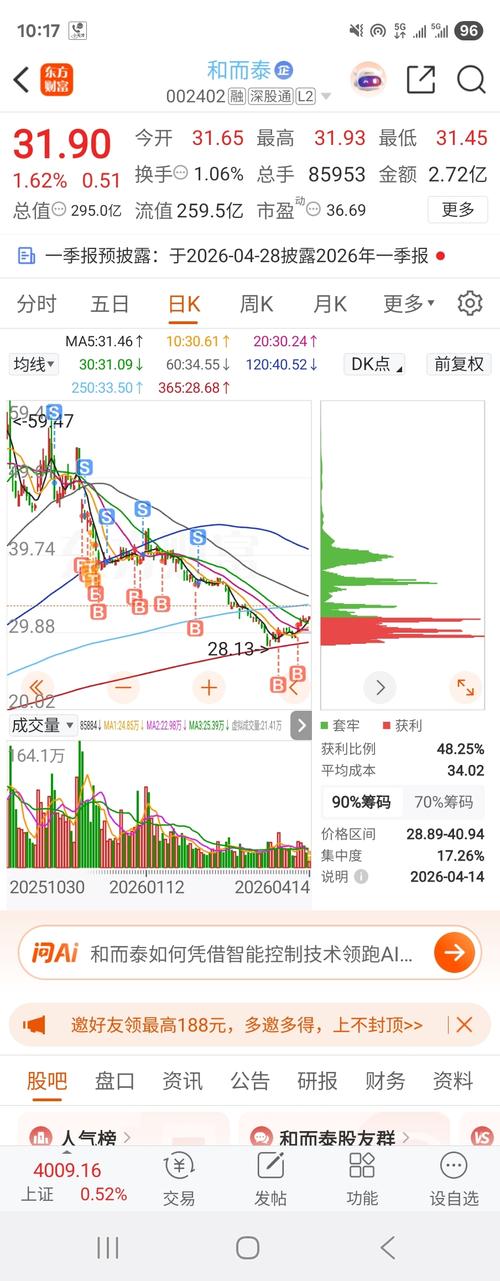 $和而泰(SZ002402)$53就看好和而泰,现在31,别人劝我换票,我53都愿意买他。何必现在31,我当然一直拿着,有钱也是补仓,乍可能开新仓,