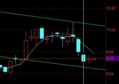 现在这几天的横盘,很可能明天会冲击一下5周线,如果站不上去,,那这一波小反弹也就结束了。。最弱的情况就是会继续探底到8.3附近的5年下降趋势线附近寻求支撑!